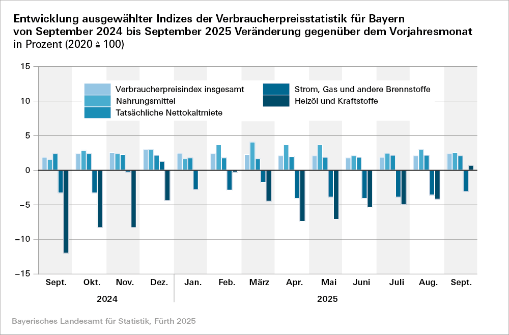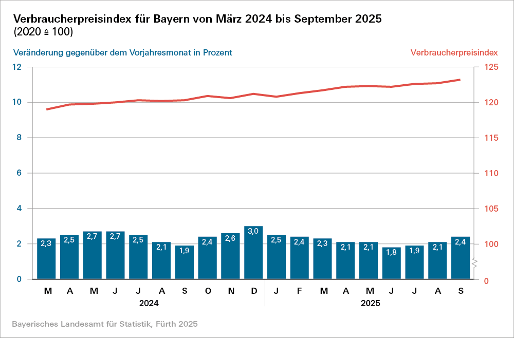 Inflation in Bayern liegt im September 2025 bei 2,4 Prozent