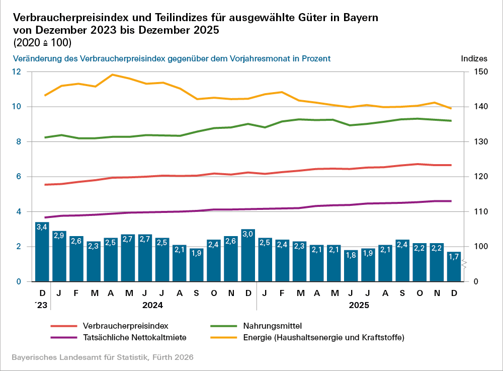 Inflation in Bayern liegt im Dezember 2025 bei 1,7 Prozent