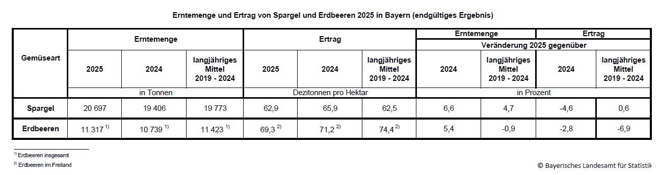 Erntemengen 2025 in Bayern: Spargel bei 20 697 Tonnen, Erdbeeren bei 11 317 Tonnen