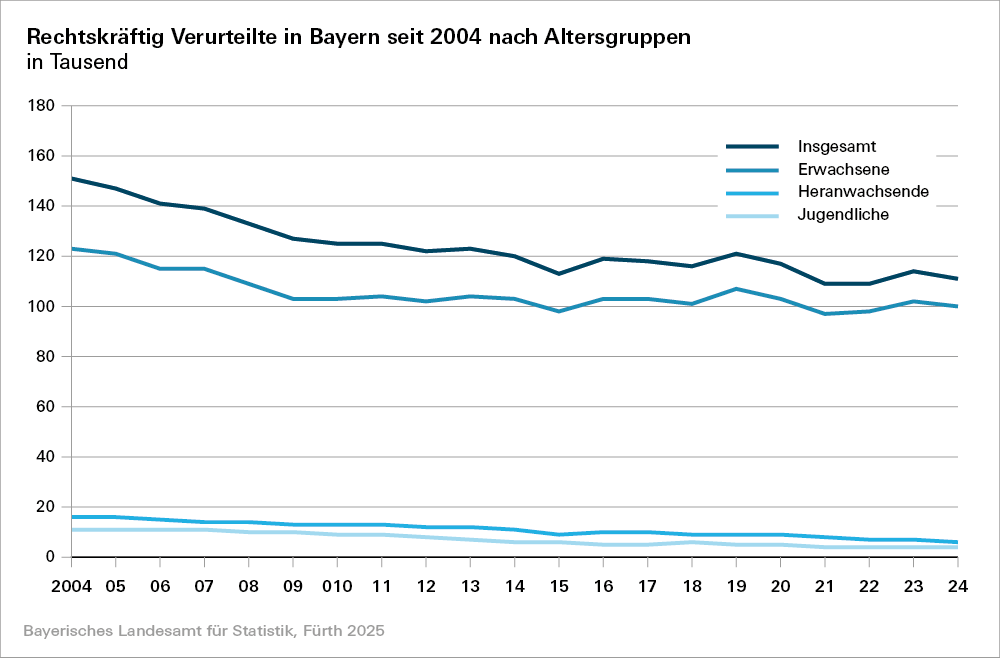 Die Strafverfolgungsstatistik berichtet jährlich über die Personen, gegen die in einem Strafverfahren eine abschließende Entscheidung ergangen ist (Abgeurteilte).
