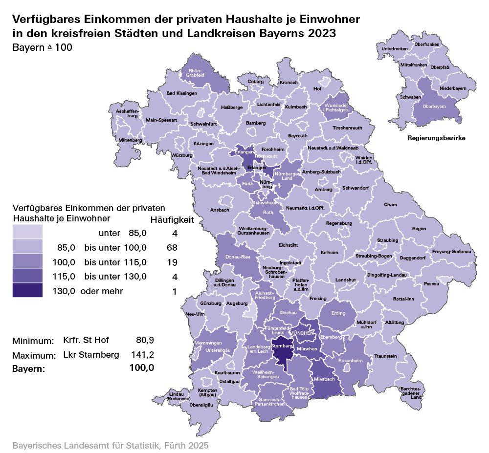 Das Verfügbare Einkommen der privaten Haushalte (VEK) ergibt sich aus dem empfangenen Primäreinkommen nach Abzug der geleisteten laufenden Transfers und der Hinzufügung der empfangenen laufenden Transfers. Es gibt das Einkommen nach dem staatlichen Umverteilungsprozess an, enthält also im Vergleich zum PEK Renten und Sozialleistungen, während Steuern und Sozialbeiträge abgezogen sind. Das VEK ist als der Betrag zu verstehen, der den Personen für Konsumzwecke oder zur Ersparnisbildung zur Verfügung steht. Es ist daher ein sehr gutes Maß für den monetären Wohlstand der Bevölkerung. Bei regionalen Wohlstandsvergleichen ist jedoch zu beachten, dass auch die Unterschiede bei den regionalen Preisen berücksichtigt werden müssten.