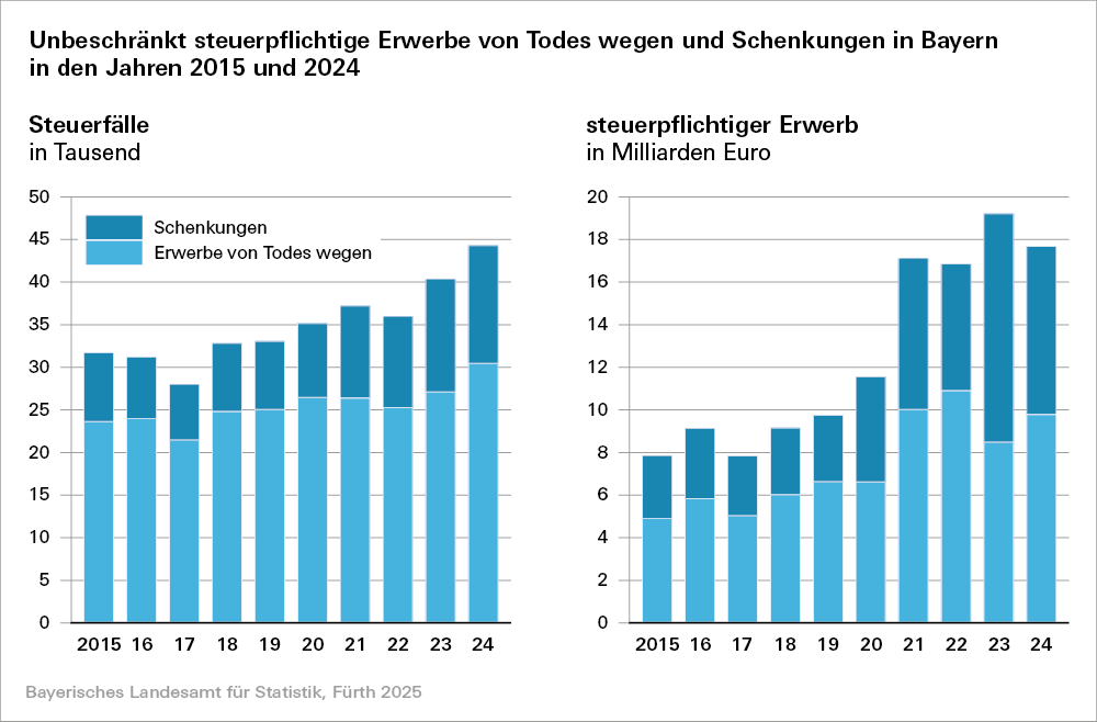 Die Erbschaft- und Schenkungsteuerstatistik weist alle steuerpflichtigen Erwerber auf, für die aufgrund eines Erwerbs von Todes wegen oder einer Schenkung im Berichtsjahr Erbschaft- oder Schenkungsteuer festgesetzt wurde, hierbei kann jedoch der Zeitpunkt der Zuwendung um mehrere Jahre zurückliegen.