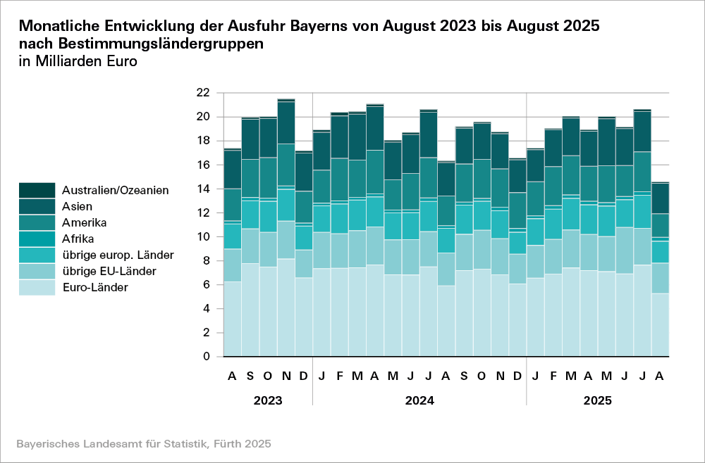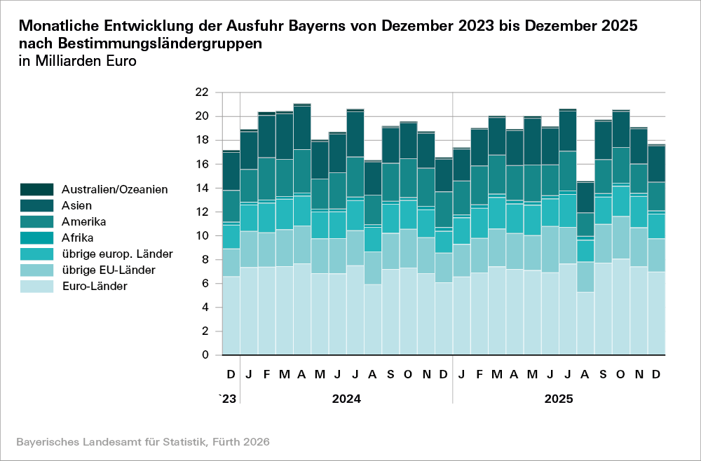 Monatliche Entwicklung der Ausfuhr Bayerns nach Bestimmungsländergruppen