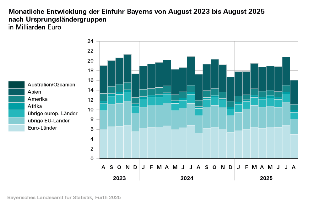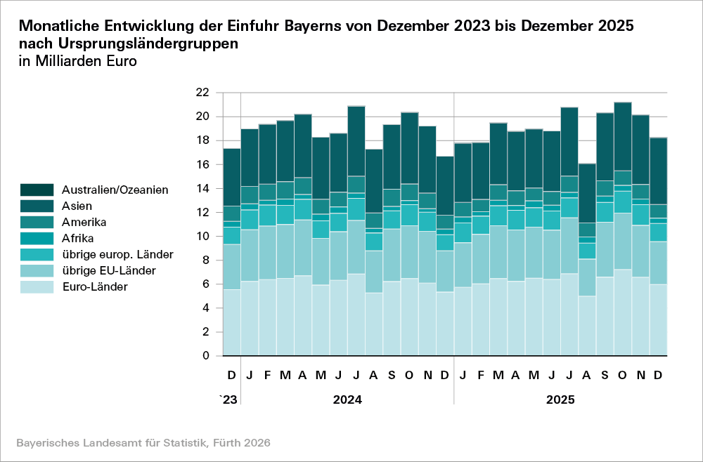 Monatliche Entwicklung der Einfuhr Bayerns nach Ursprungsländergruppen
